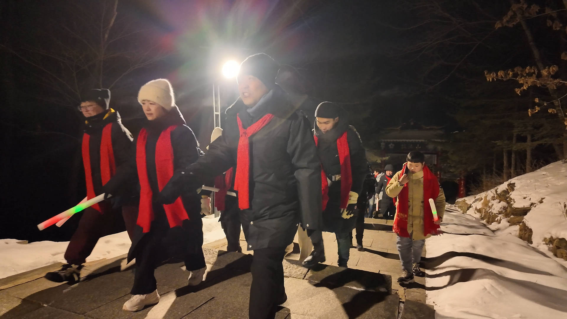 當日凌晨4時,眾多市民和登山愛好者們齊聚山腳下,盡管寒風凜冽,但絲毫未減參與者們的熱情。大家精神抖擻,臉上洋溢著對新年的憧憬與期待,有序地向山頂進發,一邊欣賞山間的冬日美景,呼吸新鮮空氣,一邊與身邊的伙伴交流互動,分享交流過去一年的點滴和對新一年的美好期許。