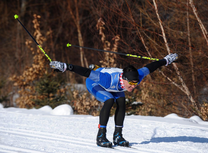2019年1月4日,一名參賽選手在比賽中。當日,2019中國長春凈月潭瓦薩國際滑雪節暨國際雪聯越野滑雪中國巡回賽長春站比賽在長春市舉行,吸引了來自32個國家和地區的1000余名選手參賽。新華社記者 孫瑋彤 攝