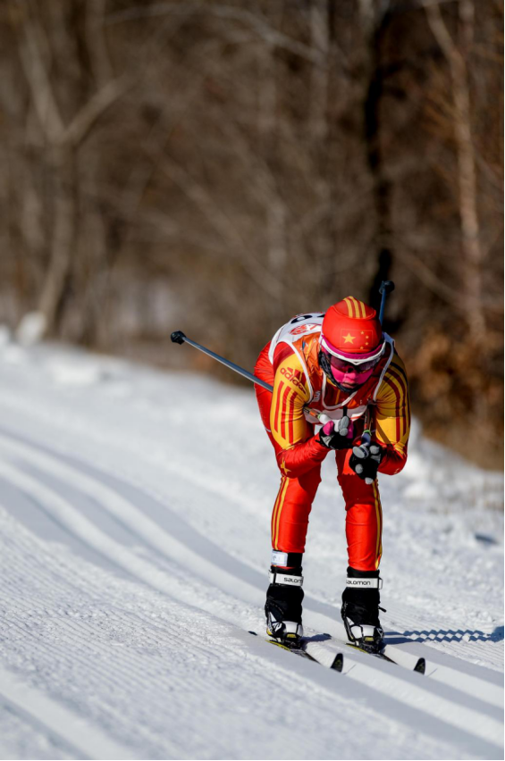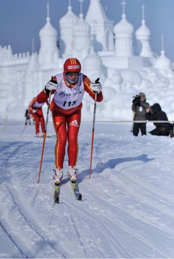 2013年1月2日,中國選手陳爽在比賽中。當日,2013中國長春凈月潭瓦薩國際滑雪節暨國際雪聯長距離積分賽在長春舉行,吸引了來自32個國家和地區的萬余名選手參加比賽。最終,瑞典選手霍格博格以2小時41分13秒奪得男子52.5公里冠軍,中國選手陳爽以3小時8分04秒奪得女子52.5公里冠軍。新華社記者 王昊飛 攝