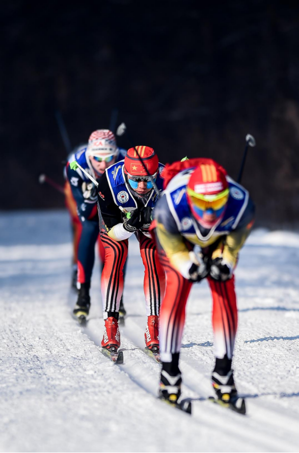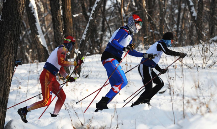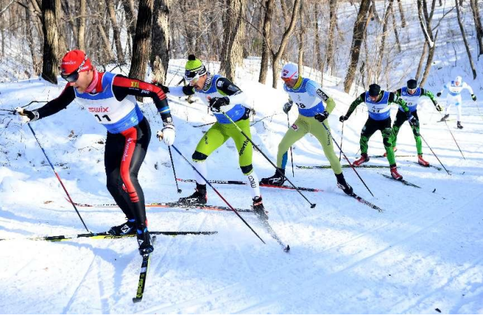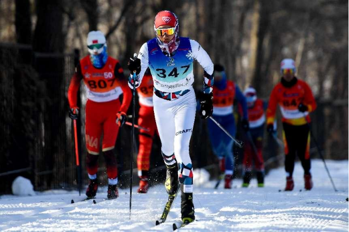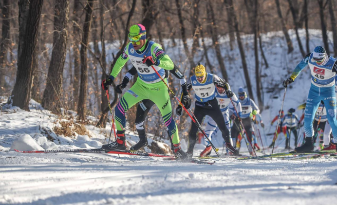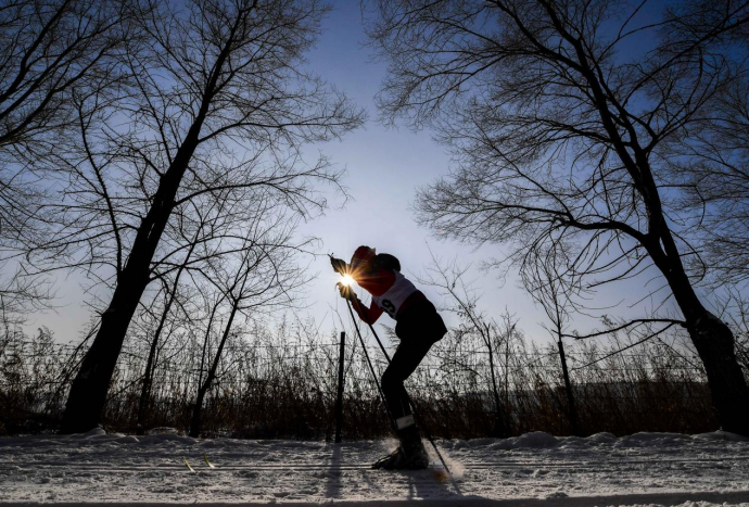 2020年1月4日,參賽選手在比賽中。當日,2020中國長春凈月潭瓦薩國際滑雪節暨2020國際雪聯越野滑雪中國巡回賽長春站比賽在長春舉行,吸引來自30多個國家和地區的千余名選手參賽。新華社記者 許暢 攝