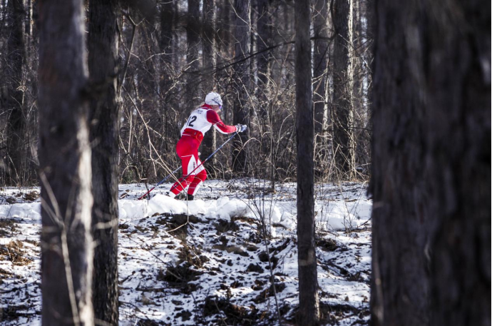 2016年1月4日,中國選手馬清華在比賽中。當日,2016中國長春凈月潭瓦薩國際越野滑雪節暨國際雪聯50公里積分賽在長春舉行,中國選手馬清華以2小時34分8秒1的成績奪得女子組冠軍。新華社記者 王昊飛 攝
