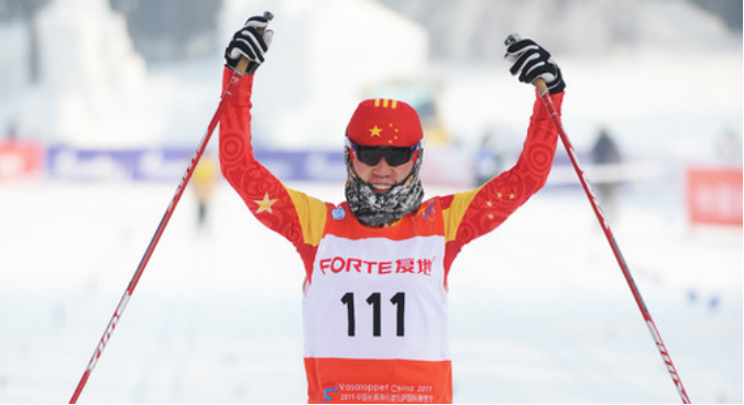 2011年1月2日,中國選手李宏雪慶祝勝利。當日,2011年中國長春凈月潭瓦薩國際越野滑雪節暨國際雪聯長距離積分賽在長春市凈月潭國家森林公園開幕,這也是第四屆國際雪聯越野滑雪中國巡回賽最后一站比賽,李宏雪以320分奪得此次巡回賽總成績第一名。新華社記者 徐家軍 攝