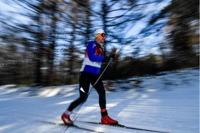 2022年1月4日,一名參賽選手在比賽中。當日,2022中國長春凈月潭瓦薩國際滑雪節在吉林省長春市舉行,共有400多位選手參加越野滑雪長距離50公里、短距離25公里、大眾越野滑雪迷你2.5公里等項目的角逐。新華社記者 顏麟蘊 攝