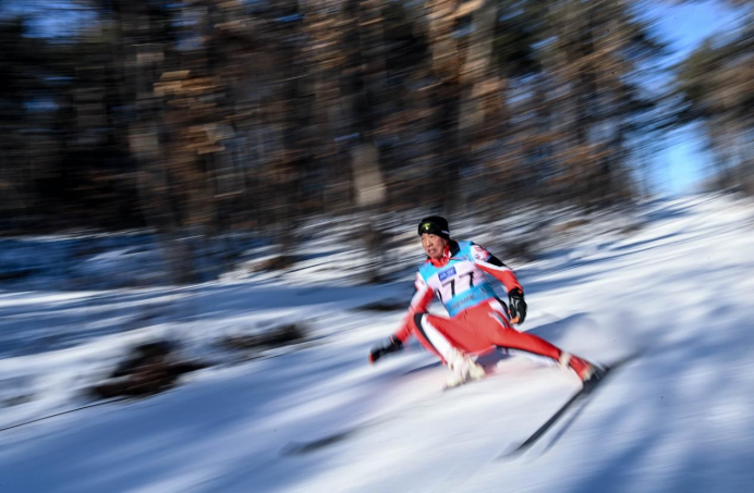 2020年1月4日,一名參賽選手在比賽中。當日,2020中國長春凈月潭瓦薩國際滑雪節暨2020國際雪聯越野滑雪中國巡回賽長春站比賽在長春舉行,吸引來自30多個國家和地區的千余名選手參賽。新華社記者 許暢 攝