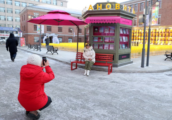 1月10日,市民正在長春北京大街西歷史文化街區拍照留念。