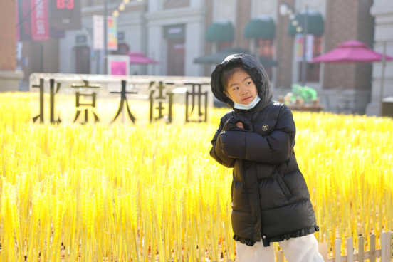 1月10日,一名小朋友正在長春北京大街西歷史文化街區拍照留念。