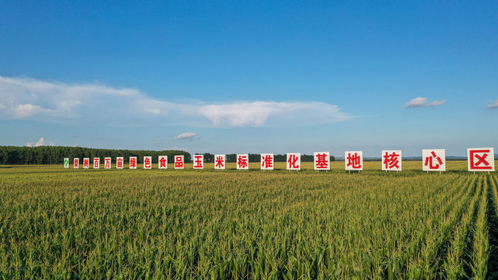 這是吉林省梨樹縣國家百萬畝綠色食品原料(玉米)標準化生產基地核心示范區(無人機照片)。新華社記者 張楠 攝