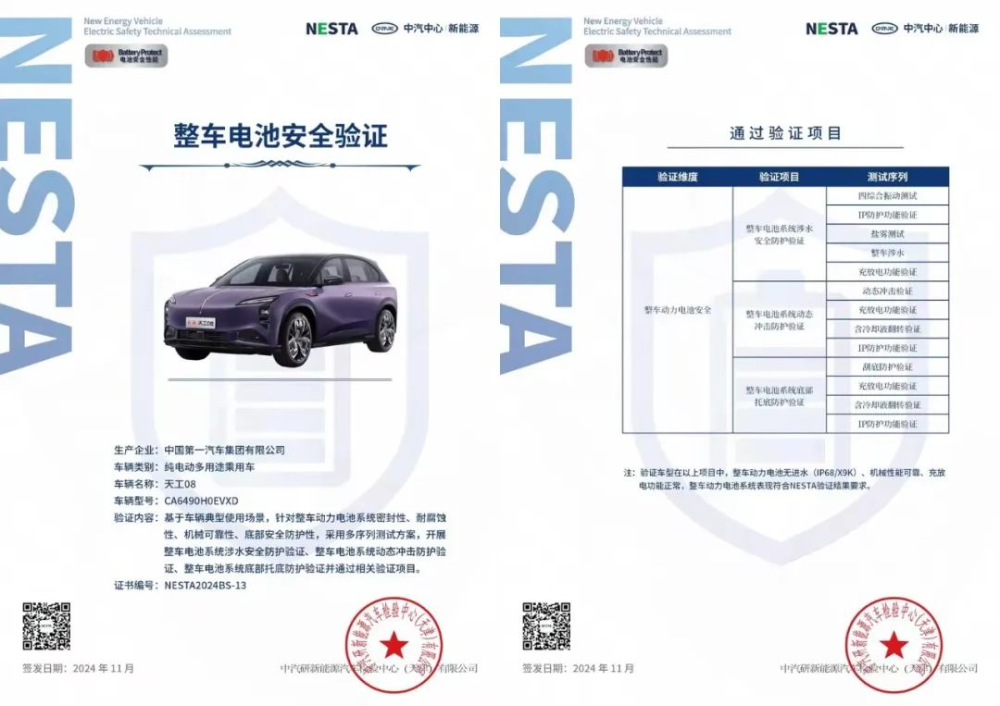 而今年年初上市的紅旗天工08,成功完成了水中托底、前后夾擊、側面柱碰、頂部側壓四項硬核挑戰,再次為新能源汽車安全樹立了新標桿。