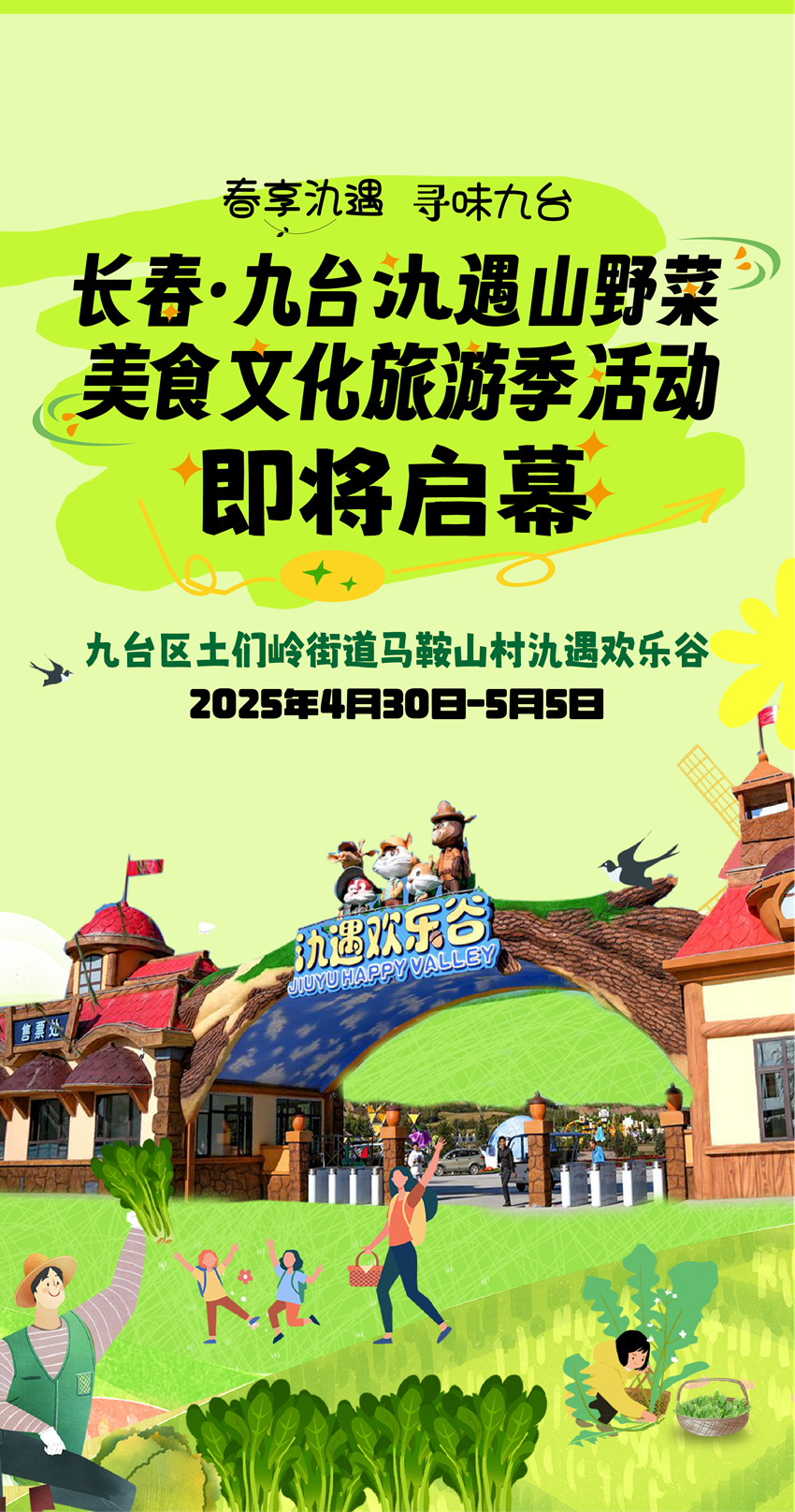 4月30日—5月5日,以“春享氿遇 尋味九臺”為主題的長春·九臺氿遇山野菜美食文化旅游季活動將在九臺區土們嶺街道馬鞍山村氿遇歡樂谷盛大啟幕。