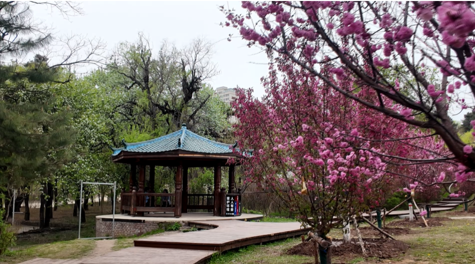 除了主次干路的綠化升級,延吉的“口袋公園”同樣亮點紛呈。勞動美主題游園里,新種植的京梅在陽光下鮮艷奪目,綠茵如毯的草坪與花香四溢的景觀相得益彰。市民們在此賞景、休憩,盡享綠色福利?!白≡诟浇苄腋?,每天來這里遛彎,心情特別舒暢?!笔忻駞桥空f。