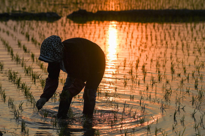 隨著氣溫持續回升,地處世界“黃金水稻帶”的吉林省迎來水稻插秧旺季,田間地頭一派繁忙景象。農民搶抓晴好天氣,以機械耕種為主,人工配合補種的方式實施插秧工作。吉林省農業農村廳5月26日農情調度顯示,全省水稻已插秧76.57%。