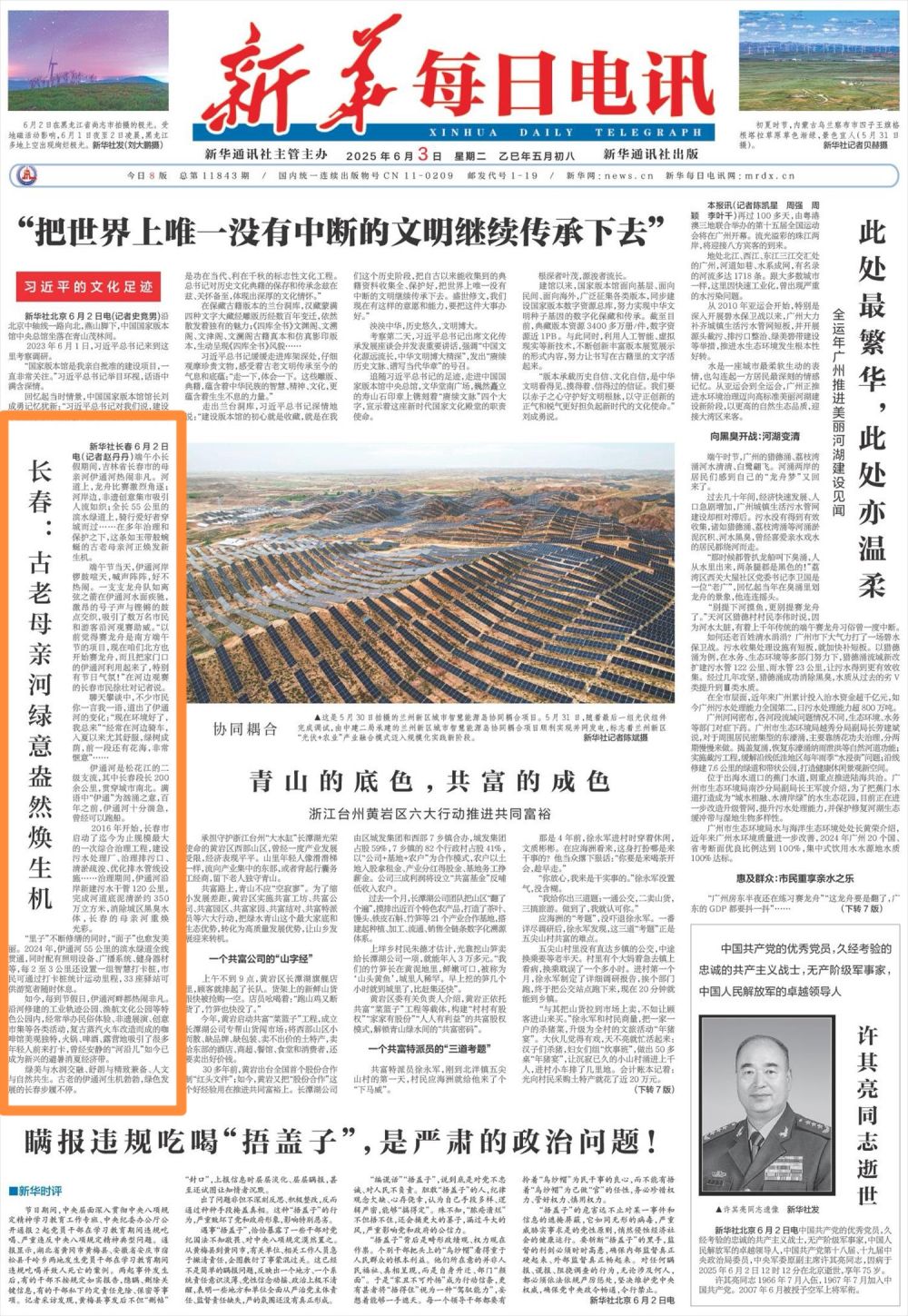 新華社長春6月2日電(記者趙丹丹)端午小長假期間,吉林省長春市的母親河伊通河熱鬧非凡。河道上,龍舟比賽激烈角逐;河岸邊,非遺創意集市吸引人流如織;全長55公里的濱水綠道上,騎行愛好者穿城而過……在多年治理和保護之下,這條如玉帶般蜿蜒的古老母親河正煥發新生機。