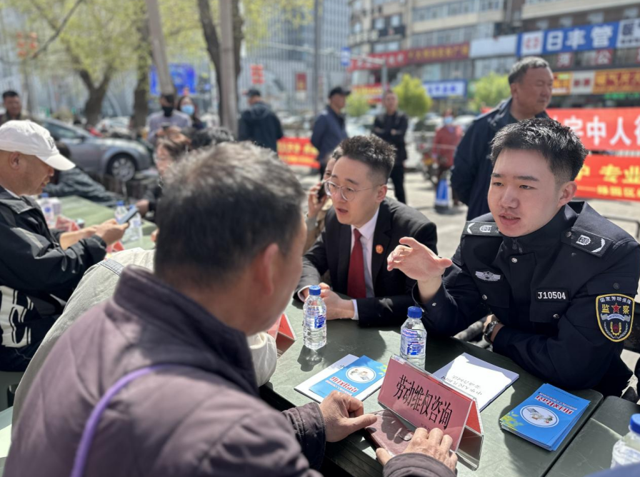 工作人員向居民講解勞動維權知識。