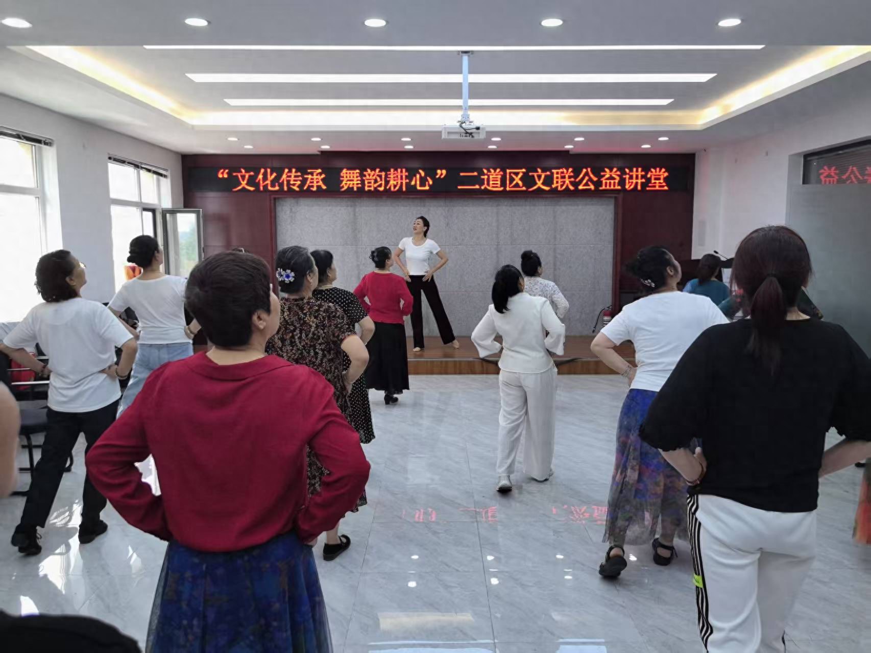 此前,區文聯持續收集了轄區內文藝團體及文藝愛好者在舞蹈領域的學習訴求,制定下發《二道區文聯公益講堂選課單》,梳理文藝“需求清單”與“師資統籌” 的雙向匹配機制,通過“群眾點單、文聯派單、協會接單、骨干跟單、受眾享單”的“五步訂單式”文藝志愿服務模式,科學、高效調配對口師資力量,精準滿足群眾多元的文藝需求。