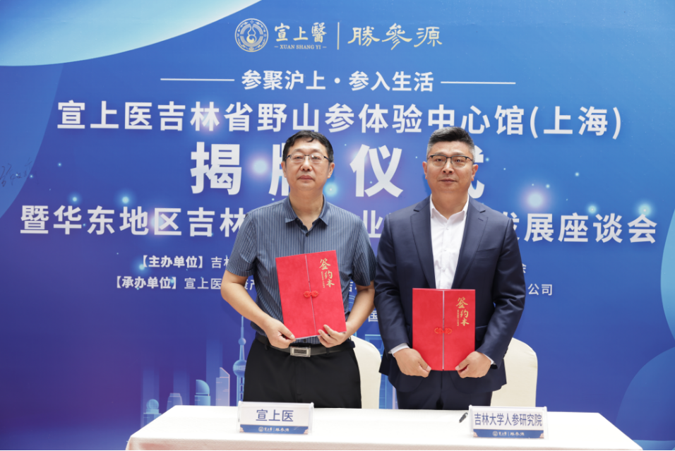 為助力吉林省人參產業高質量發展,推動更多吉林人參優質產品進入上海,6月24日,吉林省人參專班、省參業協會等部門和單位,組織開展華東地區吉林人參產業高質量發展座談會、部分代表企業簽約暨宣上醫吉林省野山參體驗中心館(上海)揭牌儀式等活動,吉林省推動人參產業高質量發展工作專班負責人,吉林省參業協會負責人,宣上醫健康產業有限公司王翠蓮董事長以及上海、杭州等地的企業家、專家學者、消費者等代表參加了儀式。