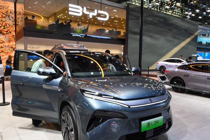 7月12日,市民在第22屆長春國際汽車博覽會比亞迪品牌展區參觀。新華社記者 張楠 攝
