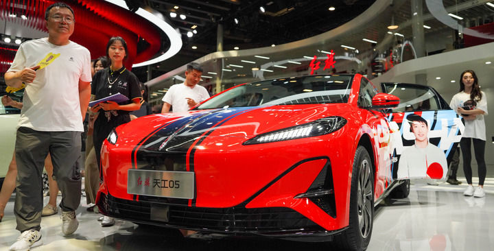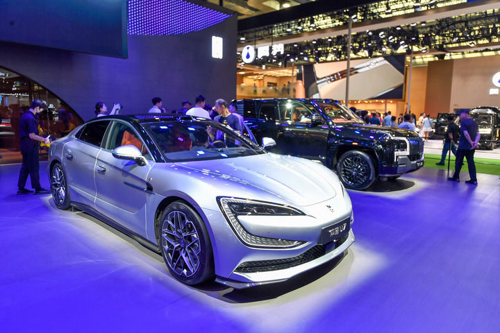 這是7月12日在第22屆長春國際汽車博覽會紅旗品牌展區拍攝的紅旗天工05車型。新華社記者 顏麟蘊 攝