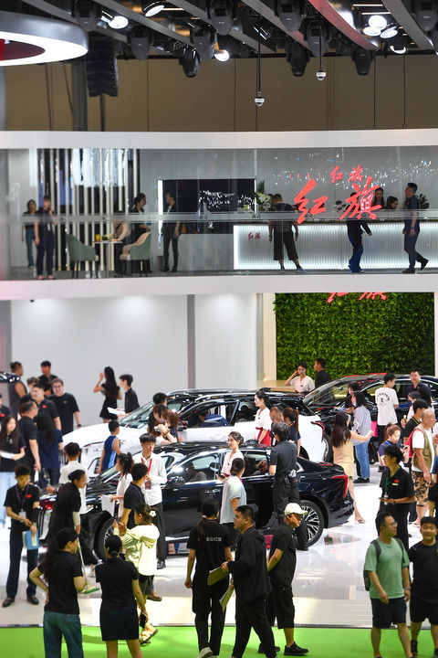 7月12日,市民在第22屆長春國際汽車博覽會紅旗品牌展區參觀。新華社記者 張楠 攝
