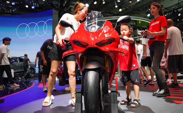 7月12日,游客在第22屆長春國際汽車博覽會奧迪品牌展區參觀。新華社記者 顏麟蘊 攝