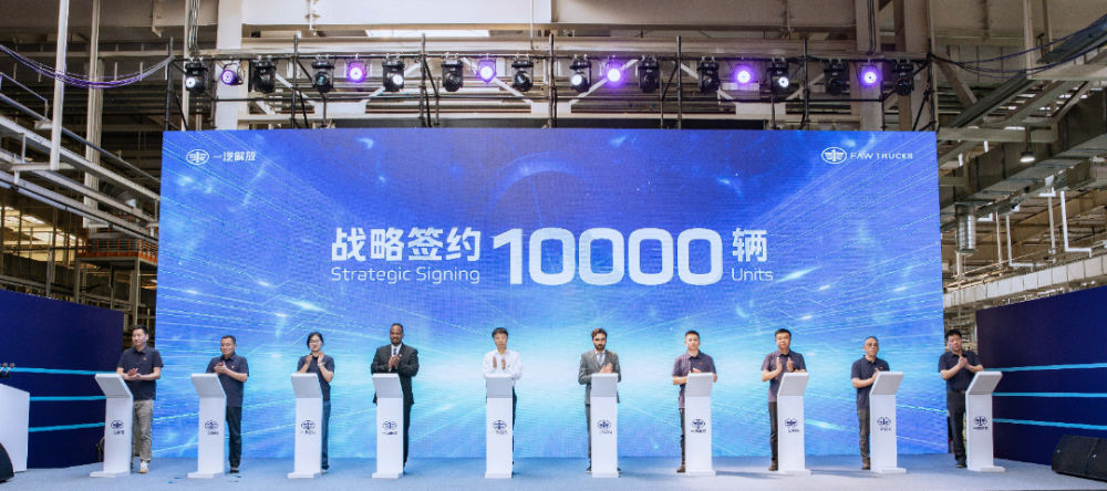 發布會上,舉行了向千輛客戶俱樂部成員授牌儀式,一汽解放發布最新智慧動力域技術及產品,與重要合作伙伴簽訂戰略合作協議。