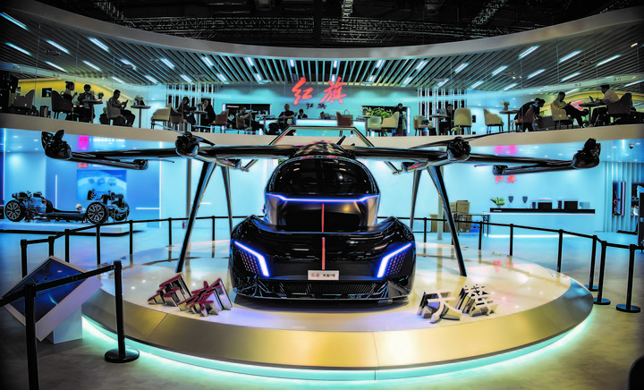 千萬級紅旗國禮“蘭亭雅韻”定制版以王羲之的《蘭亭集序》為靈感,巧妙運用大漆、黃金鐫刻、粵繡、琺瑯等非遺技藝,將匠藝與科技相融合,吸引了眾多游客圍觀拍照。紅旗“天輦1號”飛行汽車也在上海車展首發。