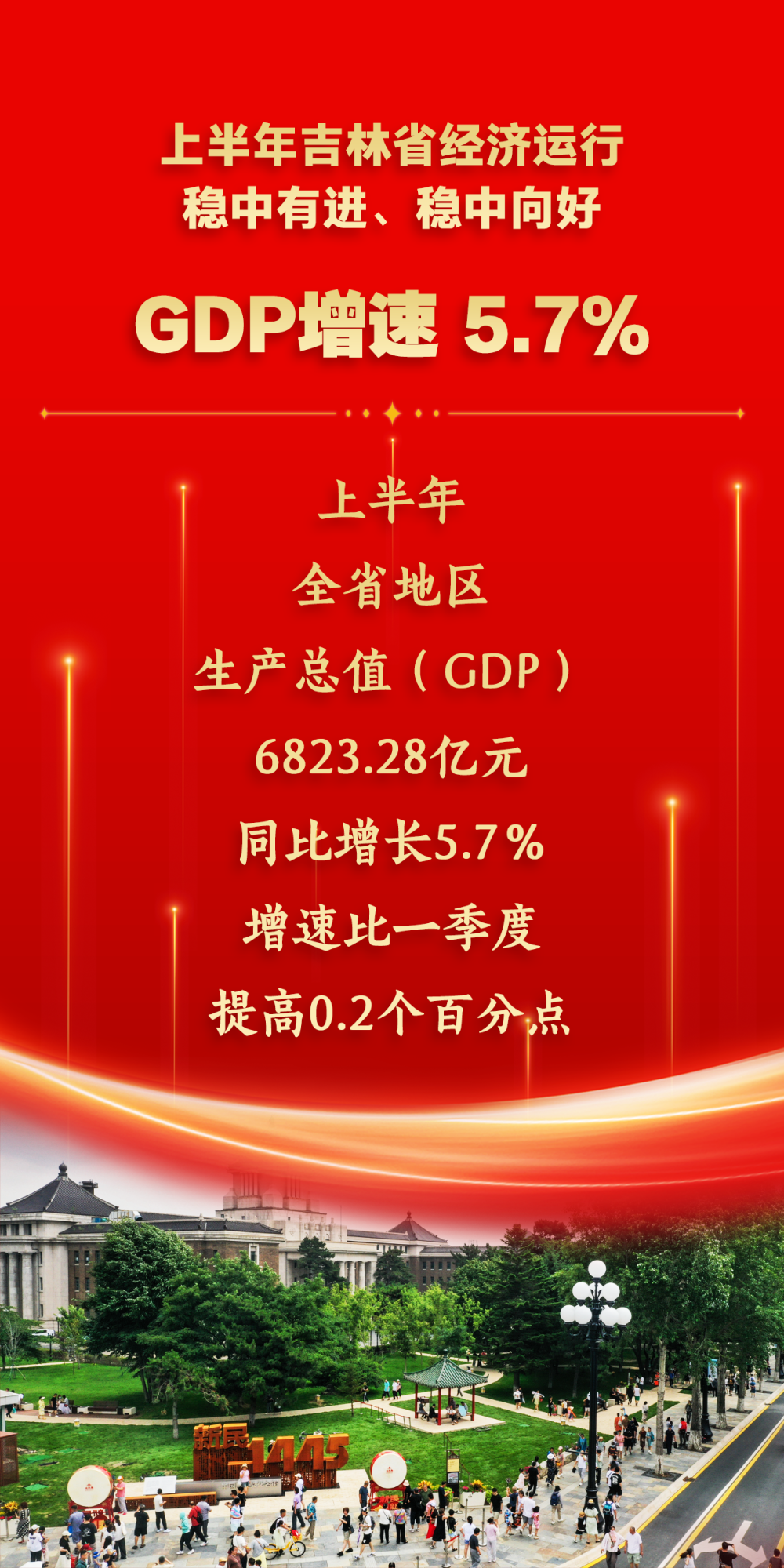 吉林省統計局發布的數據顯示,吉林省上半年地區生產總值同比增長5.7%,增速比一季度提高0.2個百分點。在一系列宏觀調控增量政策加持下,全省經濟運行保持以進促穩、穩中向好態勢,為實現全年經濟社會發展目標奠定了良好基礎。詳情>>>