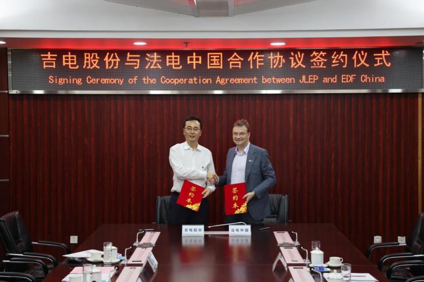 在吉電股份與法電中國合作協議的簽約儀式上,楊玉峰介紹了公司基本情況、綠色氫基能源產業發展思路及戰略布局。尚為鄰介紹了法國電力集團和法電中國的基本情況及產業特點。他表示,法電中國與吉電股份戰略契合、理念共振,希望雙方充分發揮各自優勢,在綠色氫基能源全產業鏈方面加強合作,實現互利互惠。