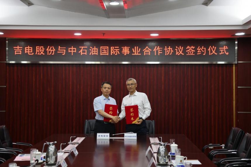 在吉電股份與中石油國際事業的合作協議簽約儀式上,吉電股份與中石油國際事業簽署《戰略合作備忘錄》,雙方將圍繞綠色氫基能源產品領域、電力業務領域、碳業務合作領域,進一步深化協同聯動與交流合作。