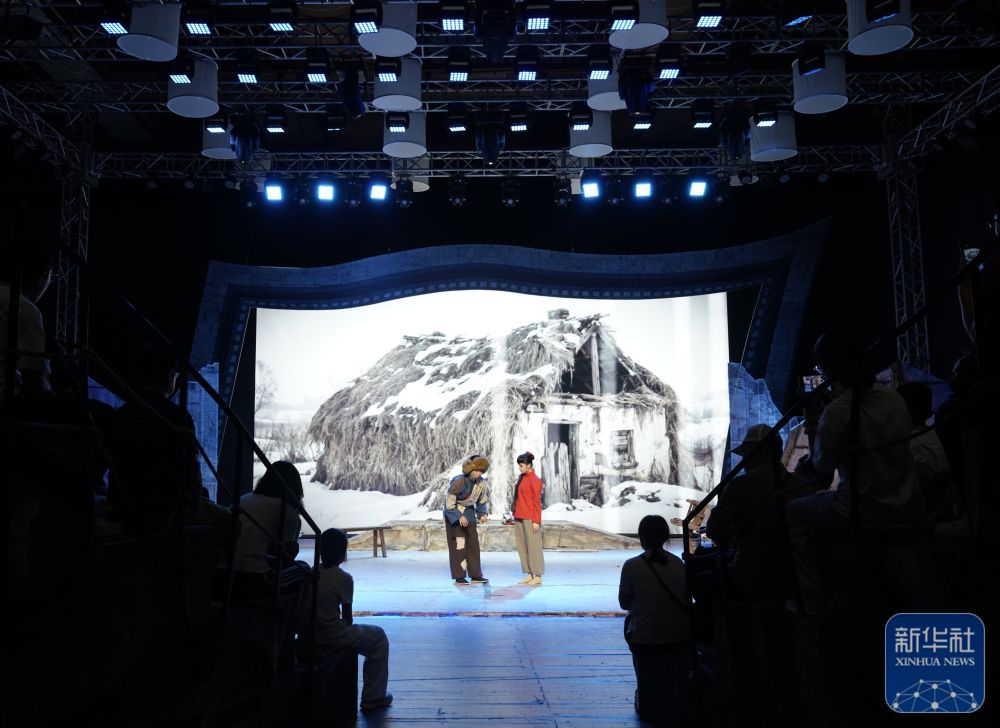 ↑ 8月7日,游客在長影舊址博物館觀看電影歌舞劇《白毛女》。