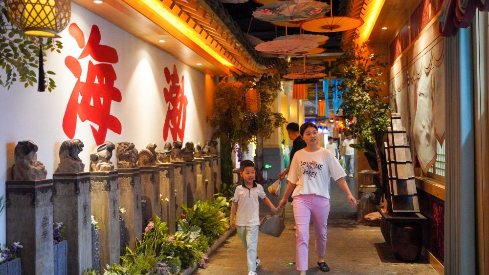 距八連城遺址約4公里處,一座名為渤海古鎮的商業綜合體人氣正旺。這里深入挖掘渤海國在政治、文化、經濟等方面效仿唐朝的史實,規劃建設古代市集、主題廣場、山水廊橋等區域。游客可以在此參與互動體驗,欣賞古風樂舞。