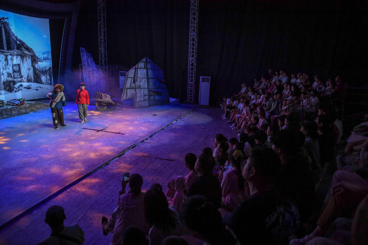 游客在長影舊址博物館觀看電影歌舞劇《白毛女》。