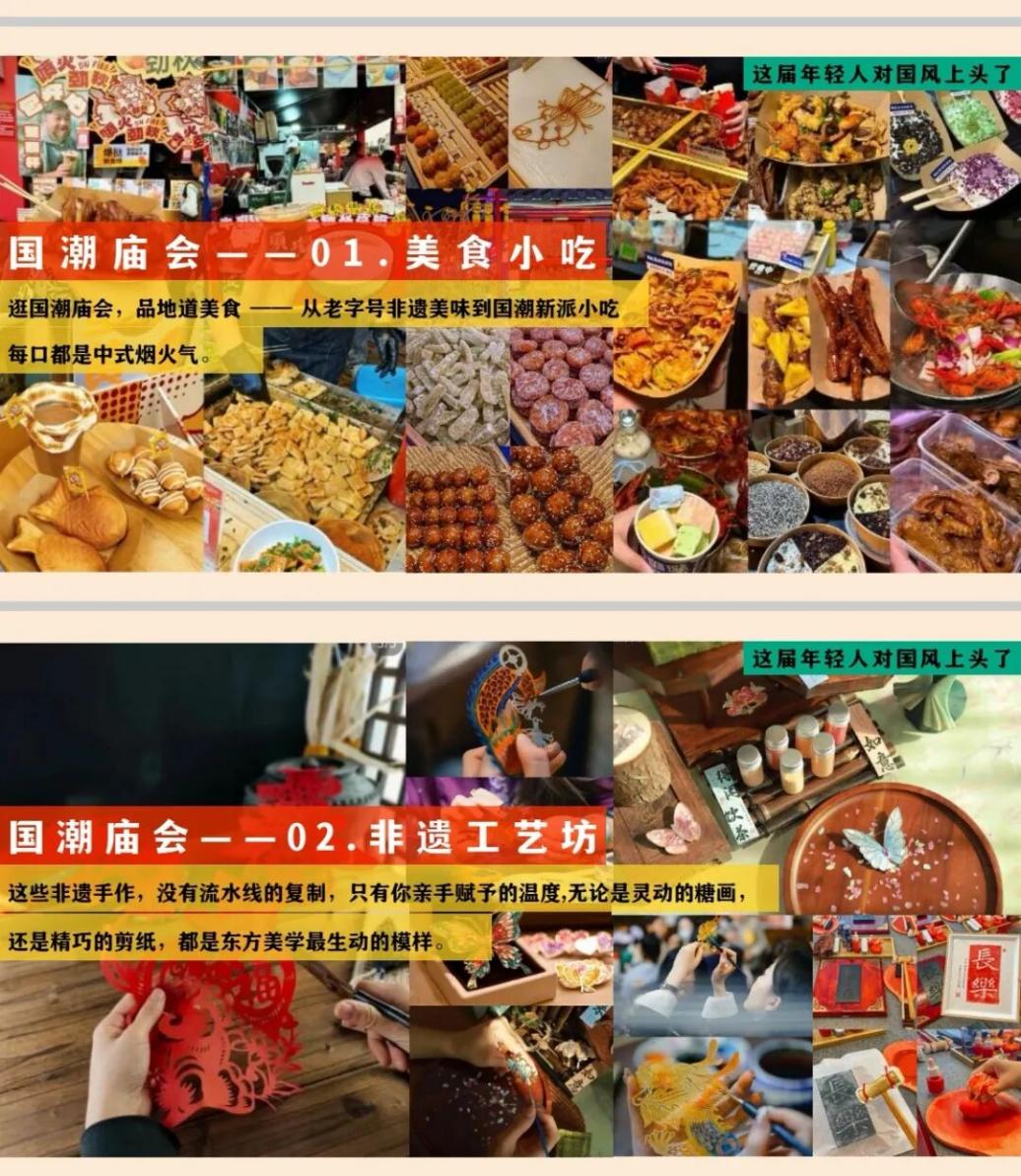 活動內容豐富多樣,精彩紛呈。在美食方面,匯聚了老字號“非遺”美味與國潮新派小吃。游客既能品嘗到承載著歷史記憶與傳統工藝的老字號美食,又能嘗試融合現代元素與創意理念的國潮新派小吃。