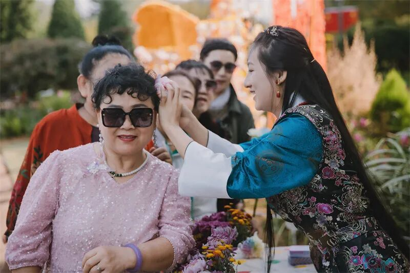 本屆菊花展籌備期間,卓拉主動承擔起制作手工作品的任務。通過反復試驗,最終制作出很多精美的作品,展出后受到市民喜愛?;ㄕ蛊陂g她負責“簪菊”點位,免費為市民簪花,因其獨特的民族風情和貼心服務備受游客青睞——她精心準備了融合菊花圖案的藏族服飾,在展現本民族文化的同時,也與菊花展主題完美呼應。