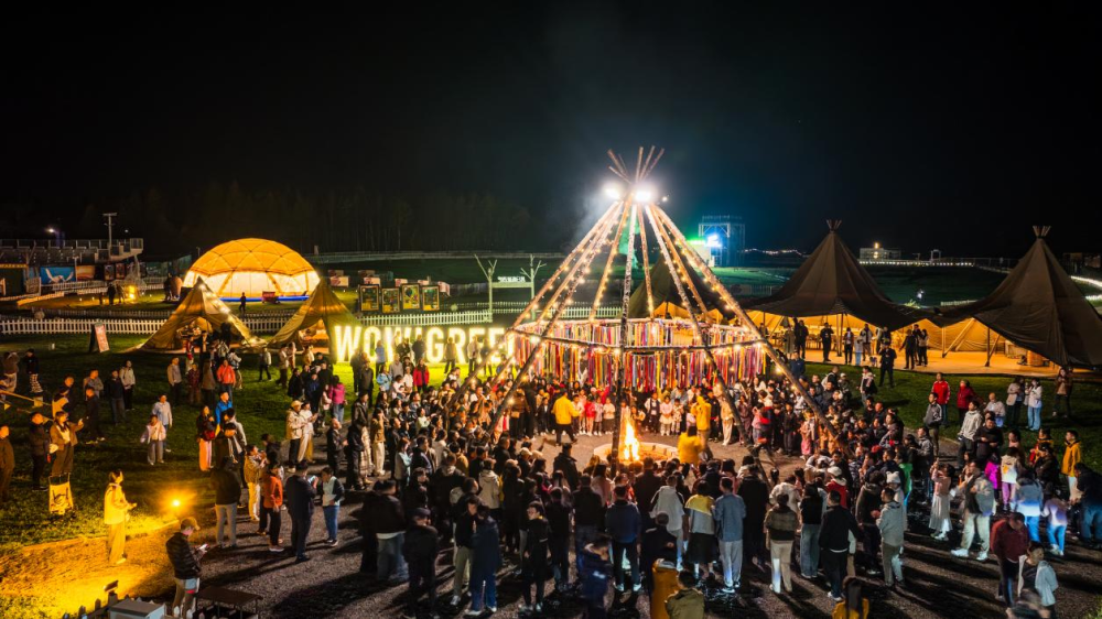 10月1日,游客在長白山華美勝地度假區觀賞篝火演出。(受訪者供圖)