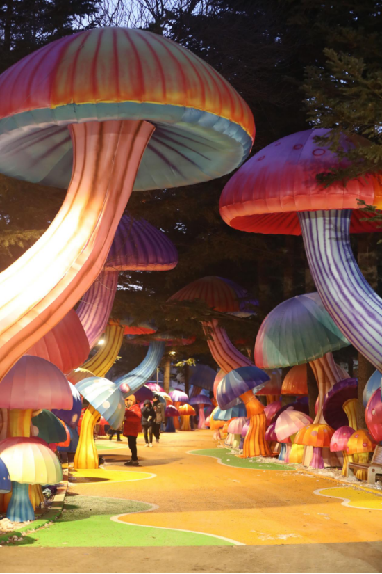 2022年12月,公園與一家民營企業展開合作,辦起了以動物為主題的花燈夜游項目,在氣溫接近零下20℃的冬季夜晚,公園內竟出現人山人??椿舻氖r。