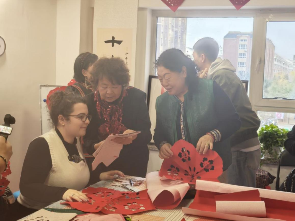 外國記者體驗省級非物質文化遺產郭爾羅斯剪紙