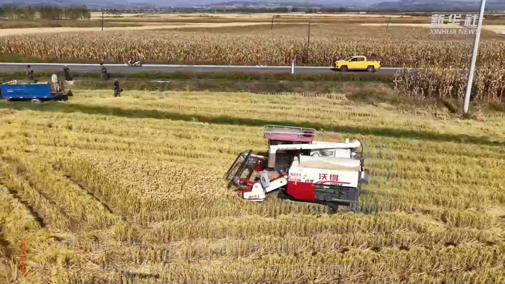在吉林省延邊朝鮮族自治州琿春市敬信鎮圈河村,大型收割機在金色的稻田中穿梭,高效收割水稻。為全面提升秋收工作質量,琿春市大力推廣秋收機械化作業,指導農民及時做好秋收機具檢修維護,保障機具正常運轉作業。